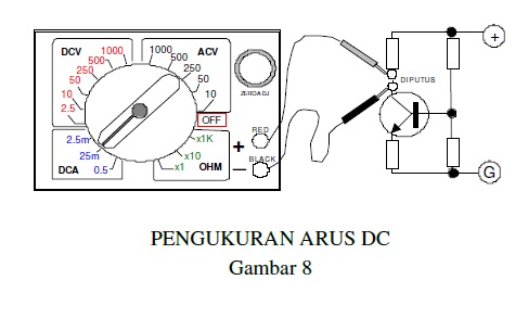 Dengan jangkah VDC, bahan suatu dioda dapat juga diperkirakan dengan circuit pada gambar 10. Bila tegangan katodaanoda 0.2 V, maka kemungkinan dioda germanium, dan bila 0.6 V kemungkinan dioda silicon.